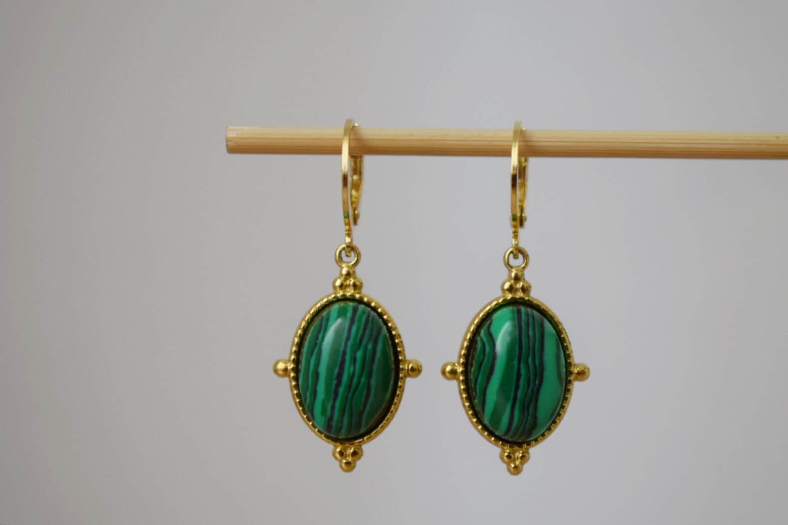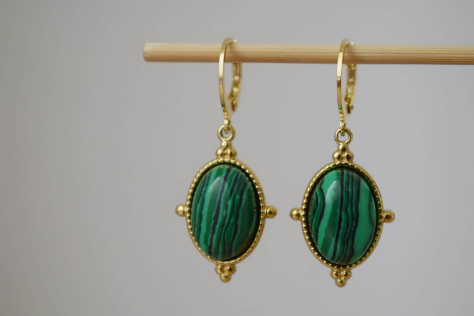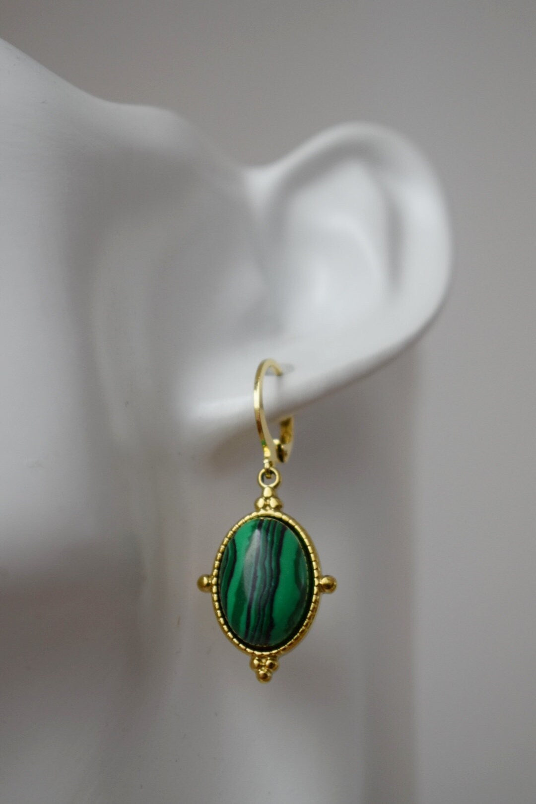 Handgefertigte wunderschöne ovale Malachit-Ohren