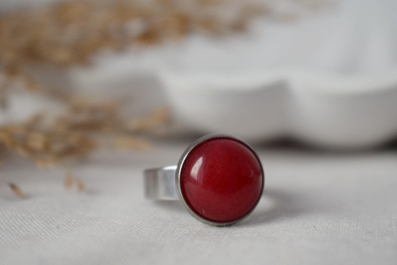 Roter Jadering, Edelsteinring, Roter Statementring, Verstellbarer runder Ring, Roter Steinring, Jadeschmuck, Schlichter Ring für jeden Tag, Geschenk für Sie