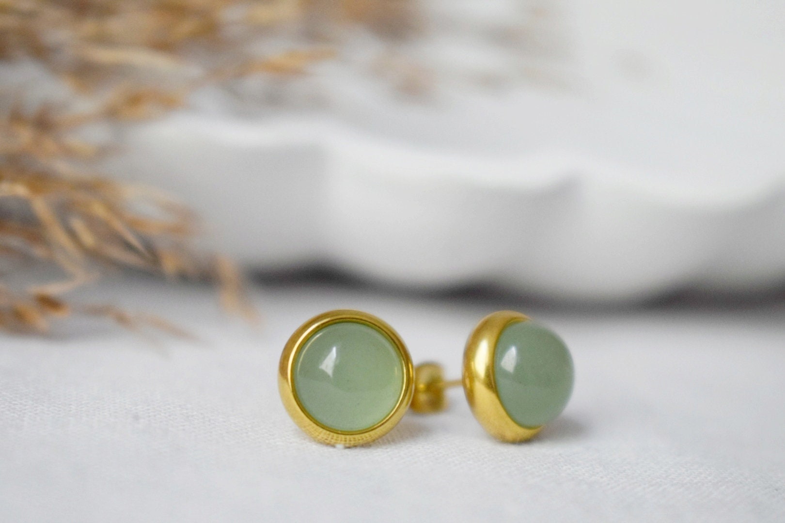 Kleine Aventurin Ohrstecker, 8mm Massive Gold Ohrstecker, Grüne Edelstein Ohrringe, Basic Ohrringe, August Geburtsstein Geschenk, Minimalistischer Schmuck