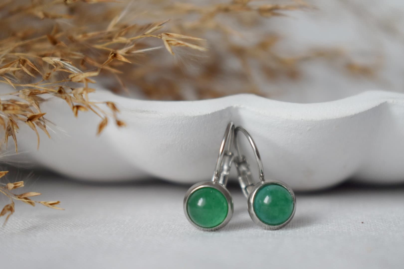 Kleine grüne Aventurin Hängeohrringe Silber, minimalistisch, 6mm Edelstein Ohrringe, Aventurin Schmuck, grüne Ohrhänger, Geschenk für Sie