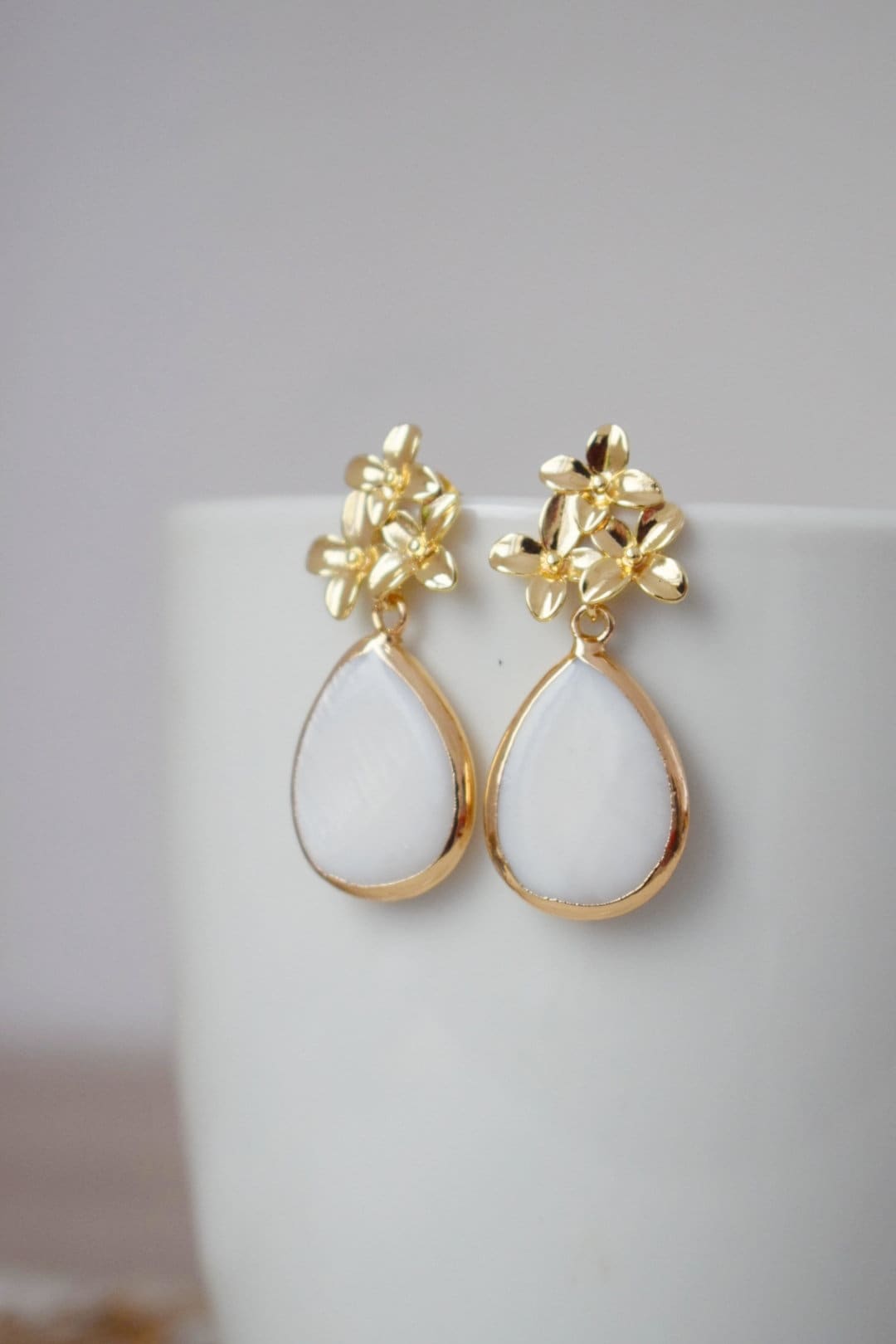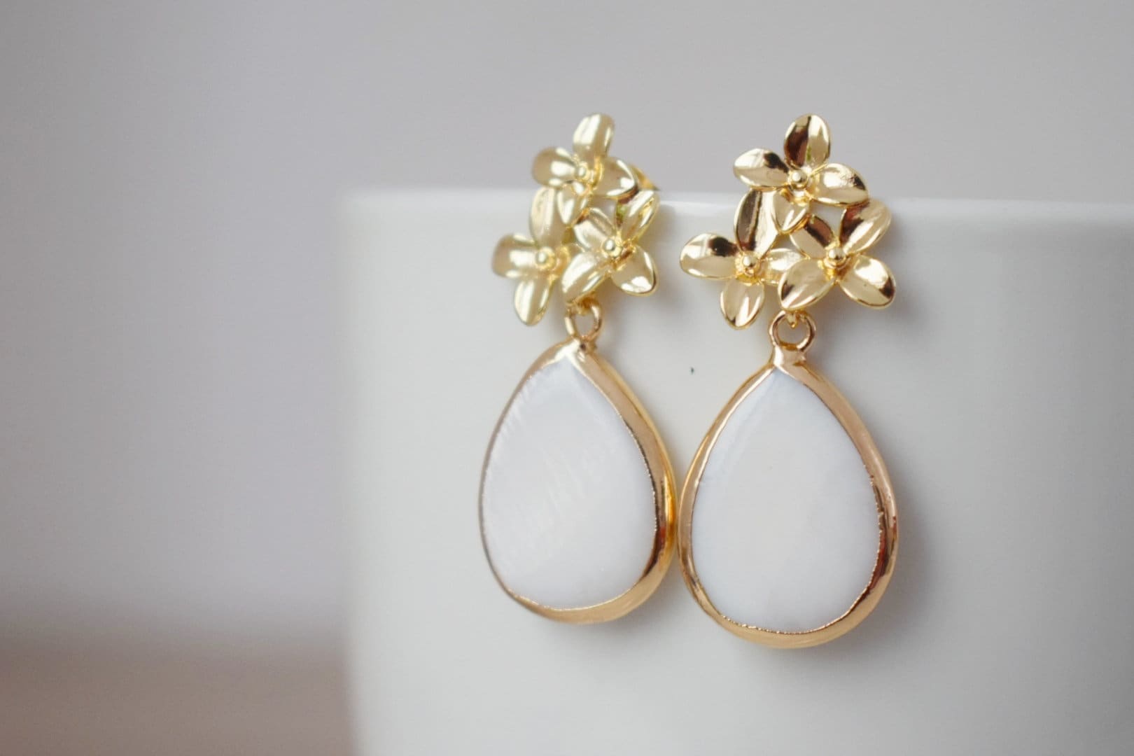 Tropfenförmige Süßwasserperle mit 18 Karat vergoldeten Blumenohrsteckern, baumelnde Muschelohrringe, Brautjungfern, Hochzeitsperlenschmuck
