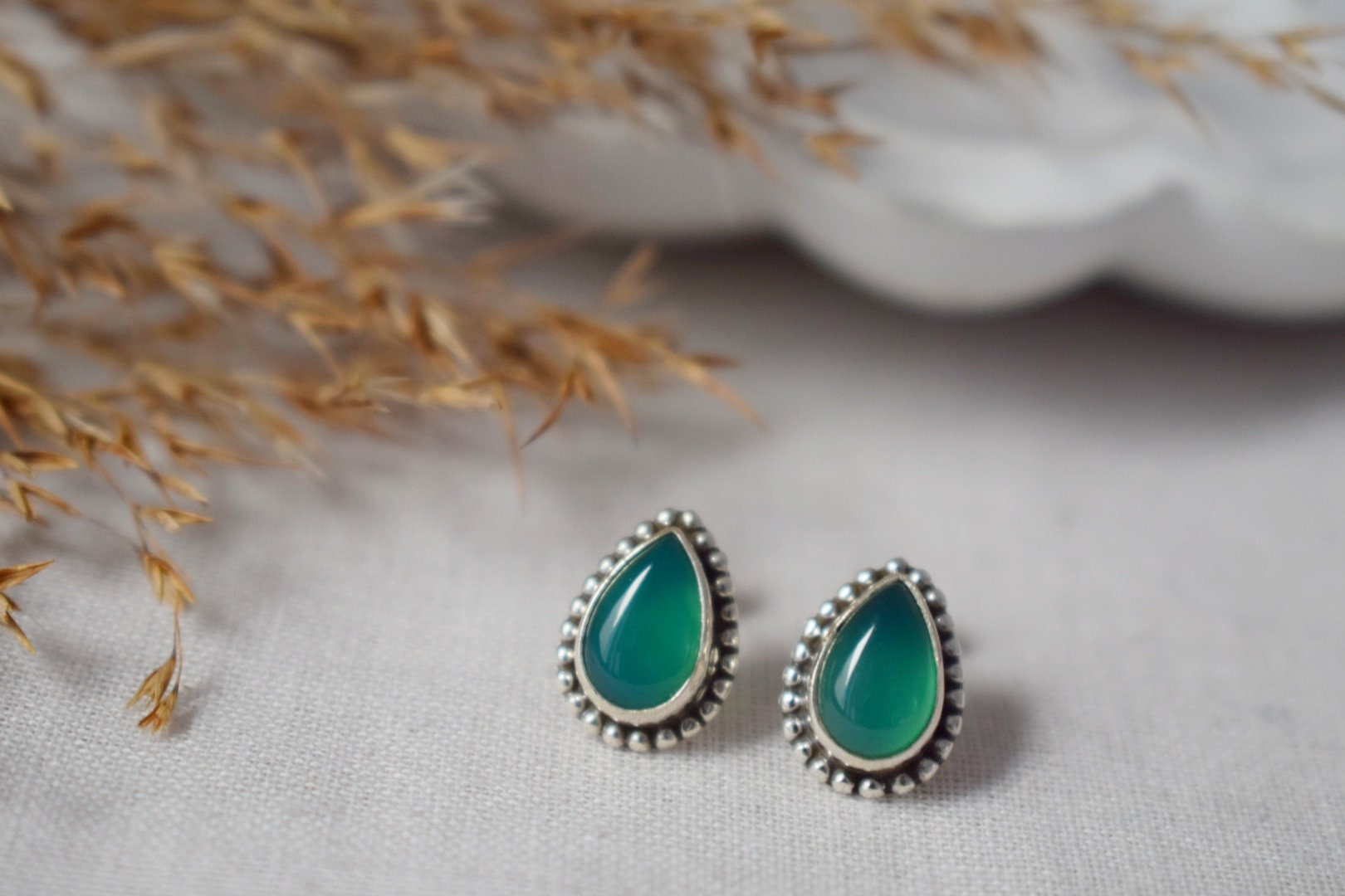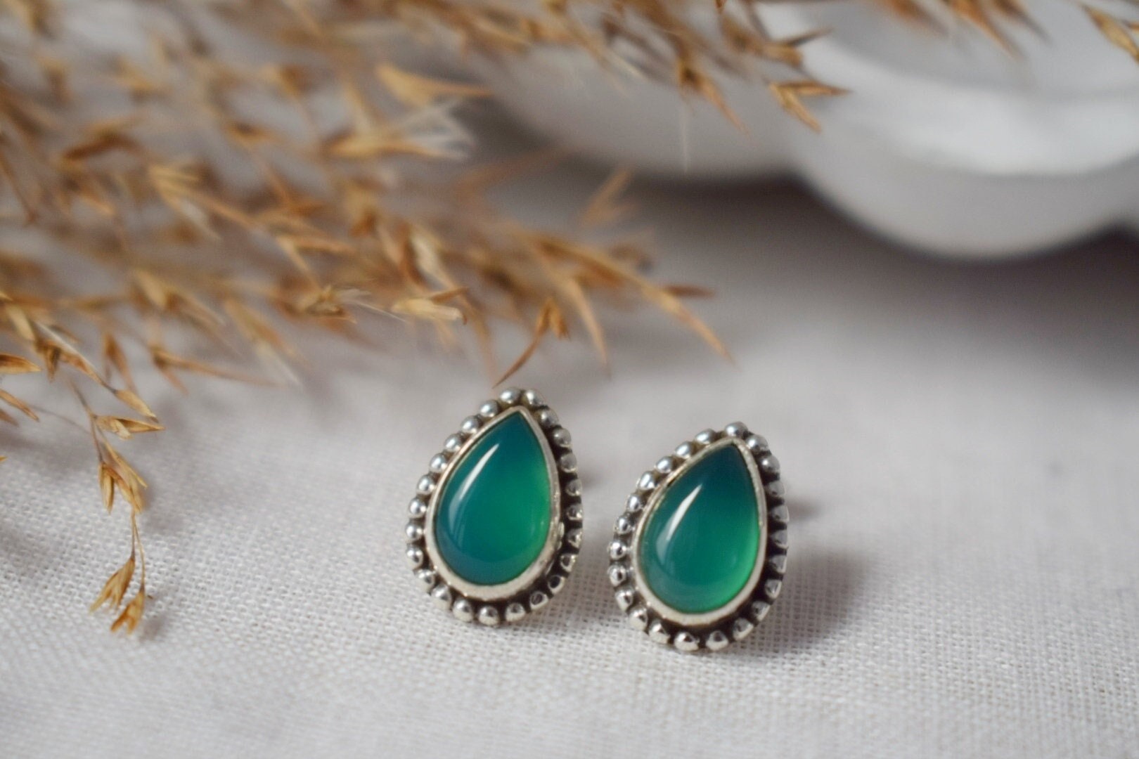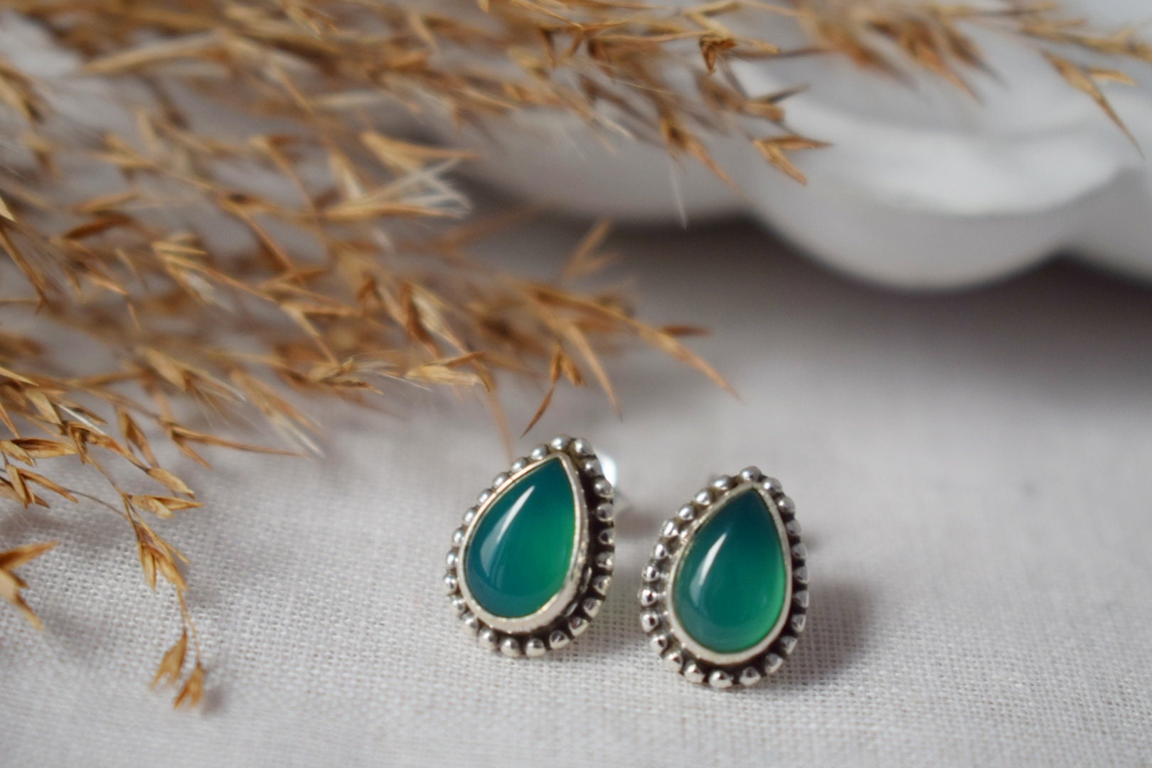 Handgemachte Ohrstecker aus Sterlingsilber mit grünem Onyx