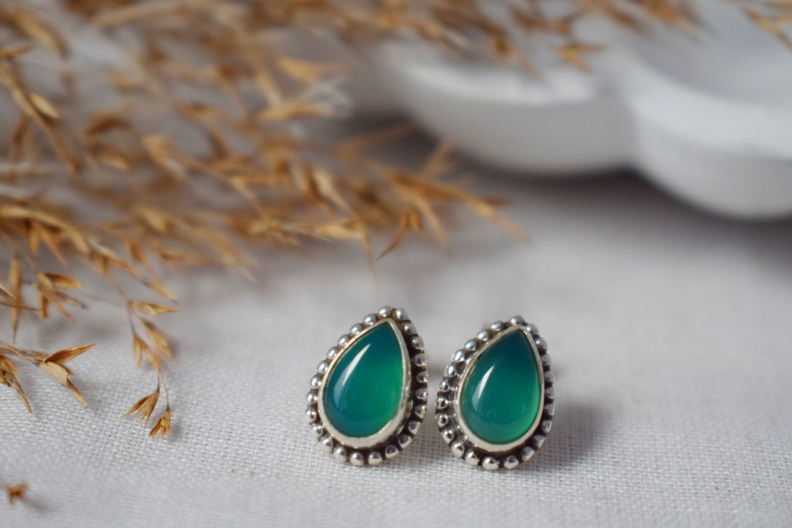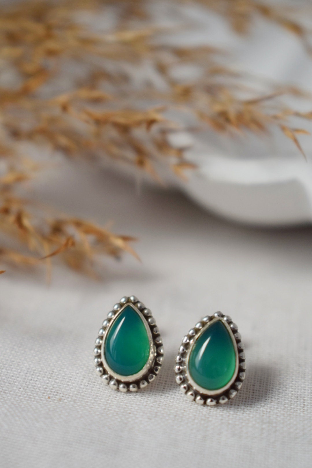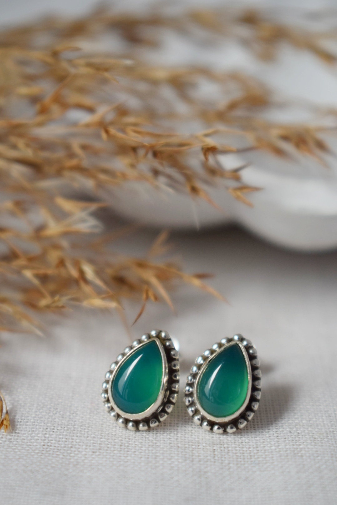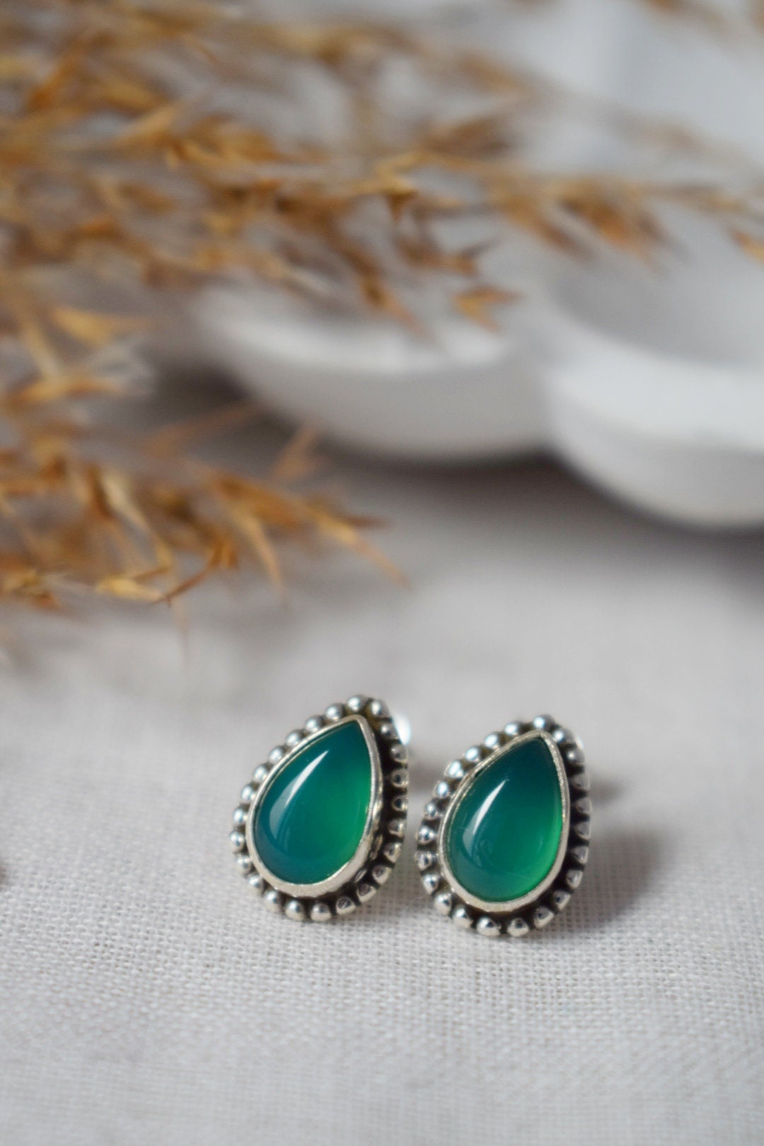 Handgemachte Ohrstecker aus Sterlingsilber mit grünem Onyx