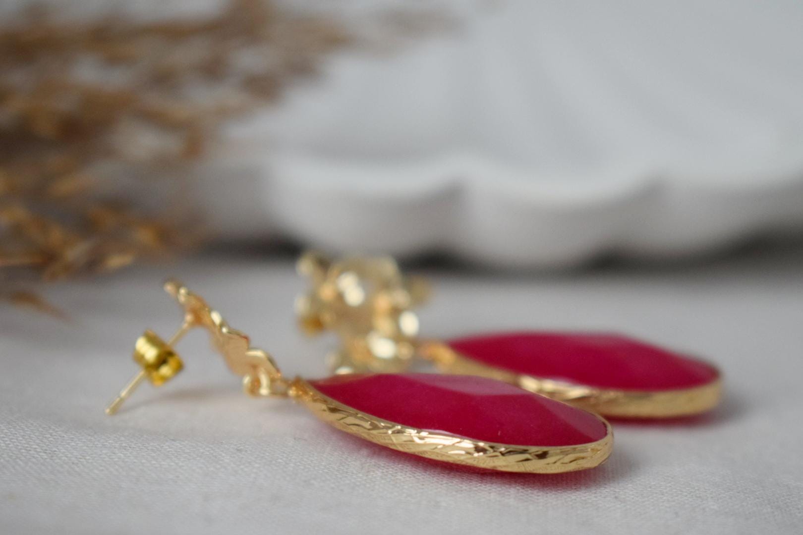 Tropfenförmige rosa Jade Ohrstecker, Blumen Ohrhänger, Lange Edelstein Ohrringe, Facettierter Stein, Boho Chic Schmuck, Muttertagsgeschenk