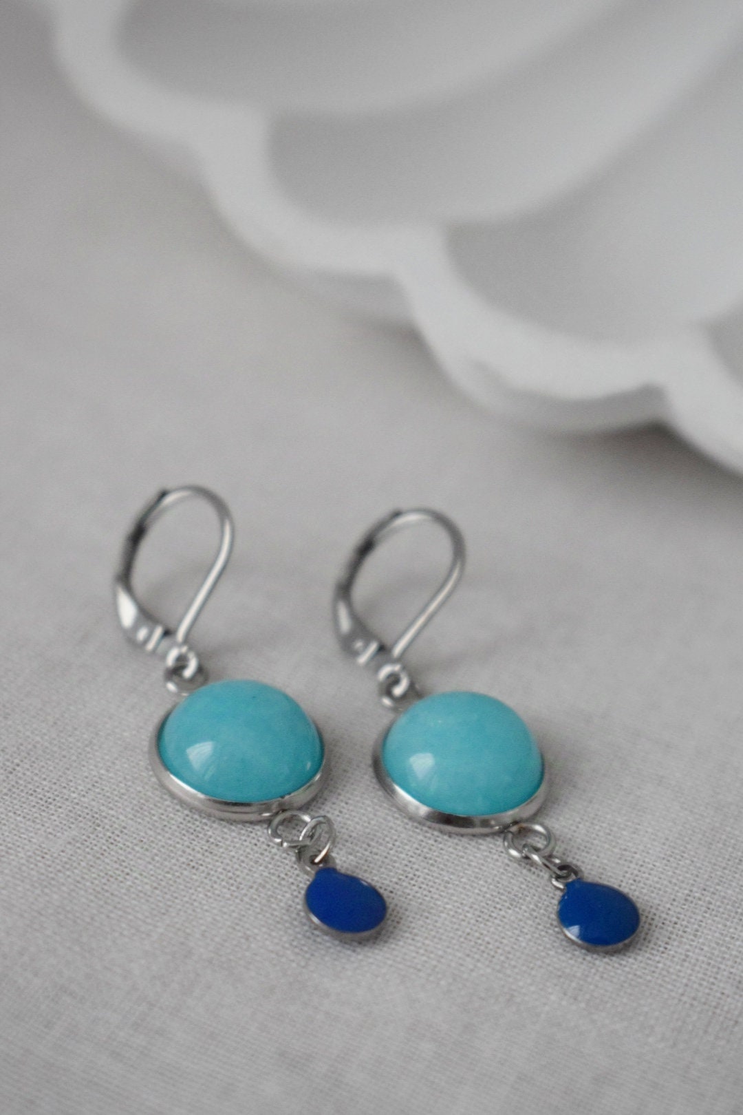 Türkise Jade Emaille Ohrringe, Boho Handgemachter Edelstein Schmuck, Einzigartiges Weihnachtsgeschenk für Sie, Türkis Stein Ohrringe