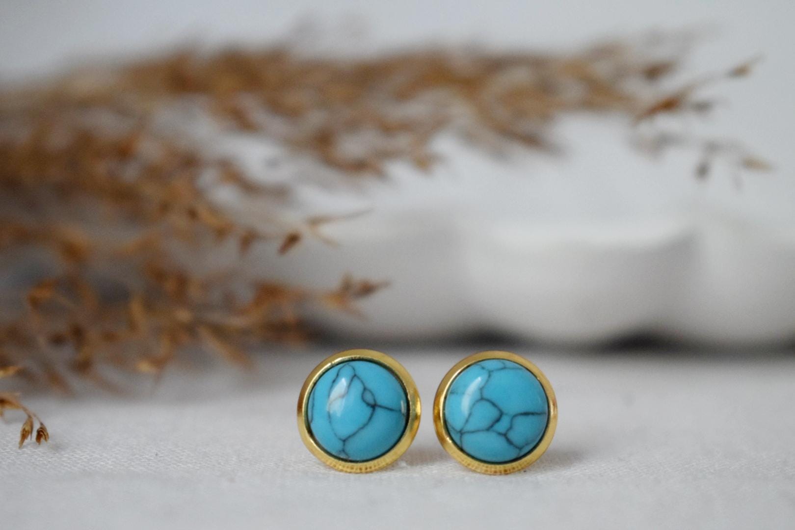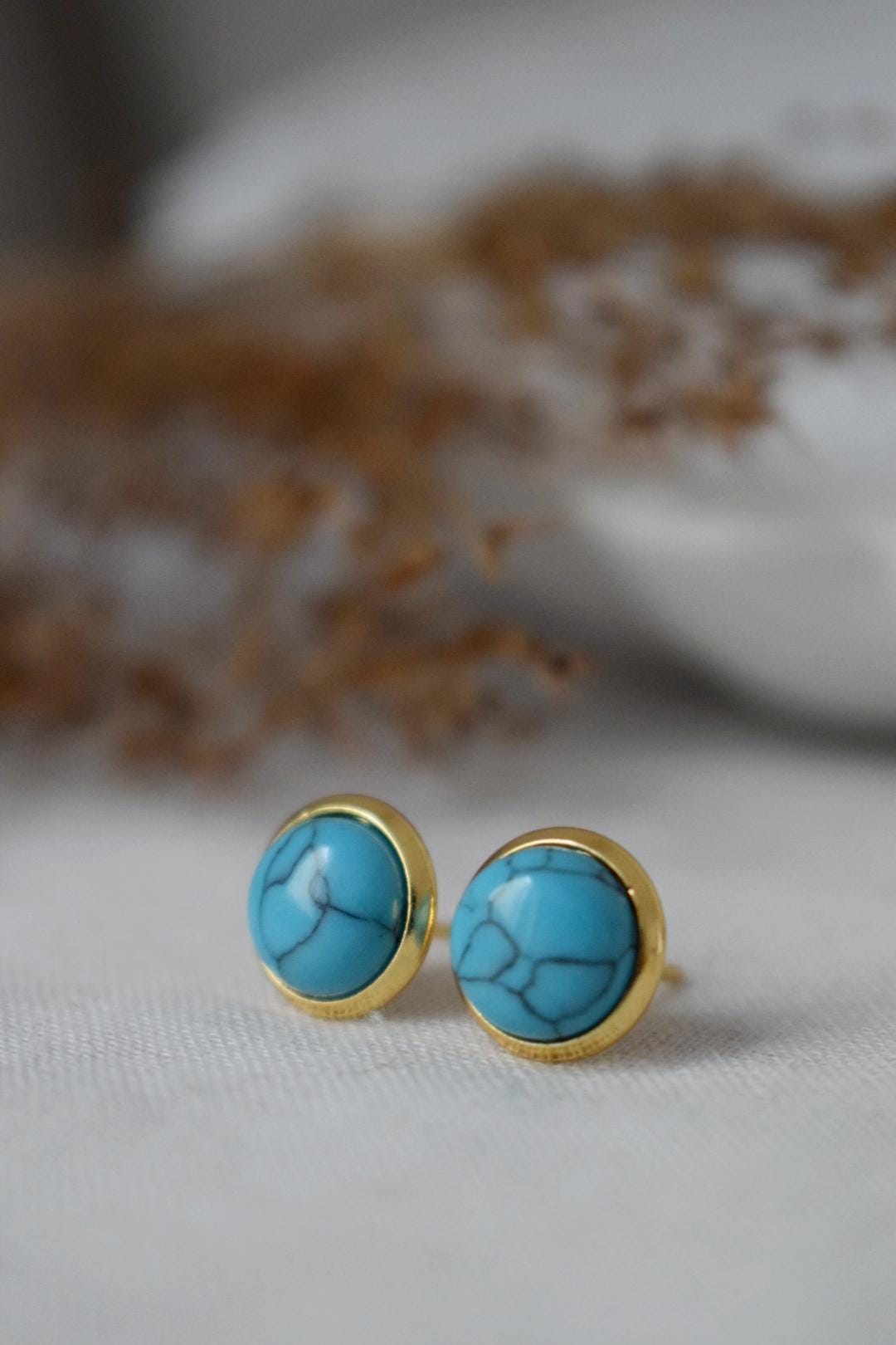 Türkise Ohrstecker, Minimalistische 18 Karat vergoldete Edelstahl-Steckverschlüsse, Ohrstecker, Unisex Leichtschmuck, Weihnachtsgeschenk