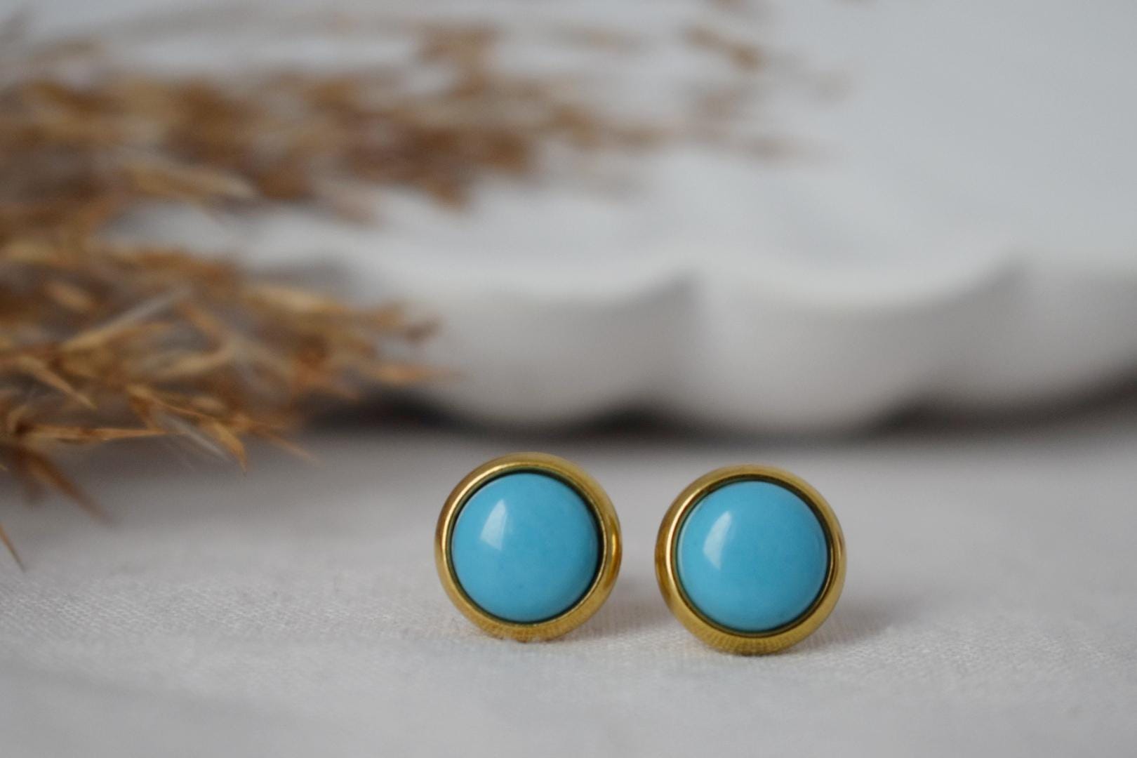 Türkise Ohrstecker, Kleine runde Edelstein Ohrringe, 8mm Push Back Post Ohrringe, Unisex Geschenk Schmuck, Bestes Weihnachtsschmuck Geschenk