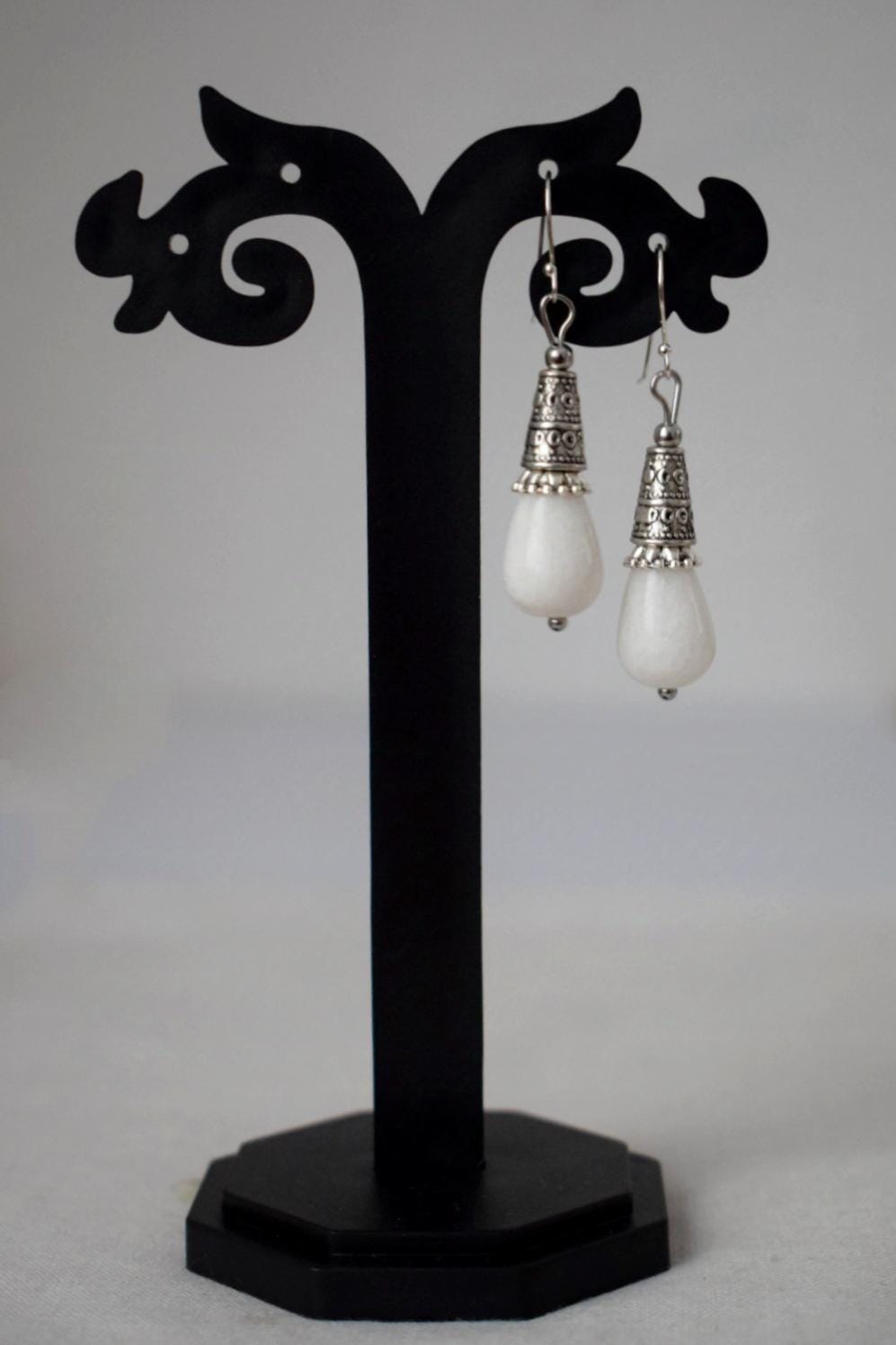 Handgemachte wunderschöne Vintage Weiße Jade Tropfenohren