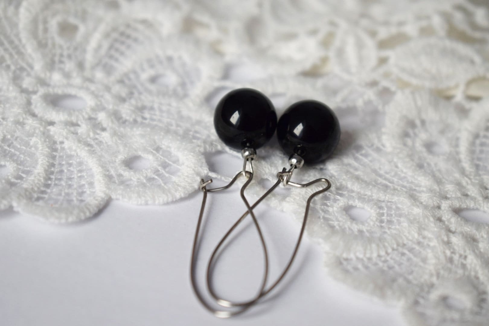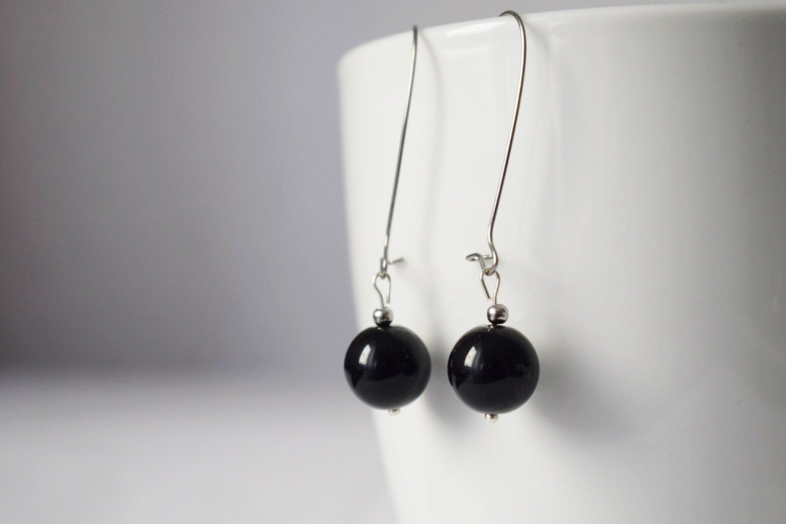 Schwarze Creolen für Frauen, Achat Creolen, Schwarzer Achat, Boho Creolen mit Edelstein, handgefertigter Schmuck, Geschenk für Sie