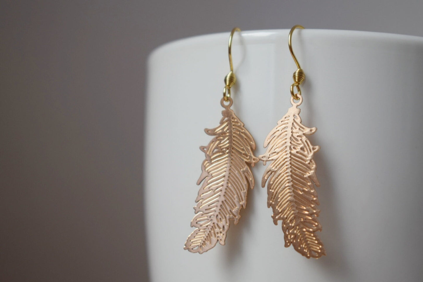 Federgoldohren für Frauen, 18 Karat vergoldete Edelstahlohrhaken, Boho filigrane Goldohren, Federschmuck, Geschenk für Sie