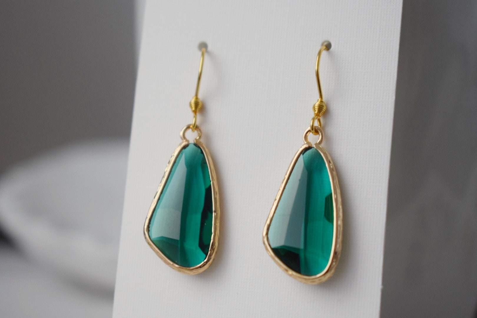 Grüne Glasohrringe, Große Tropfenohrringe, Facettierte Ohrringe, Lange Tropfenohrringe, Boho Hängeohrringe, Glasgoldschmuck