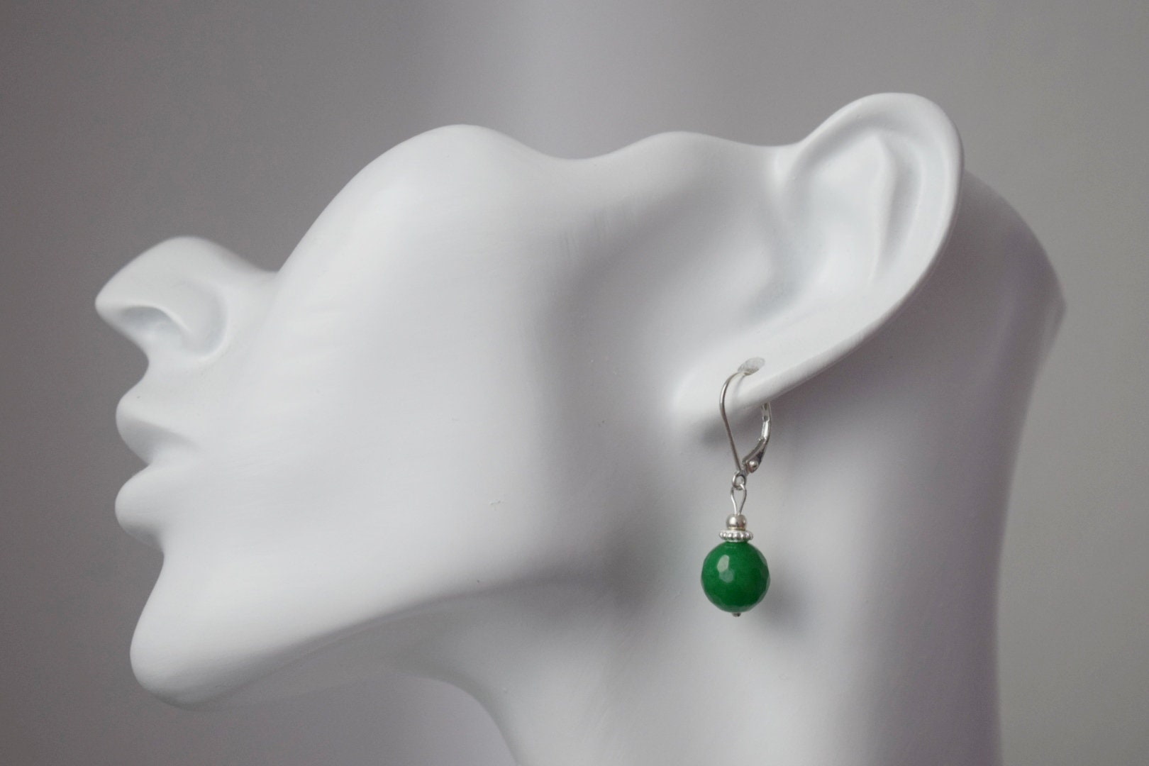 Handgefertigte wunderschöne Ohrhänger aus Sterlingsilber mit Jadeperlen in wunderschönem Grün