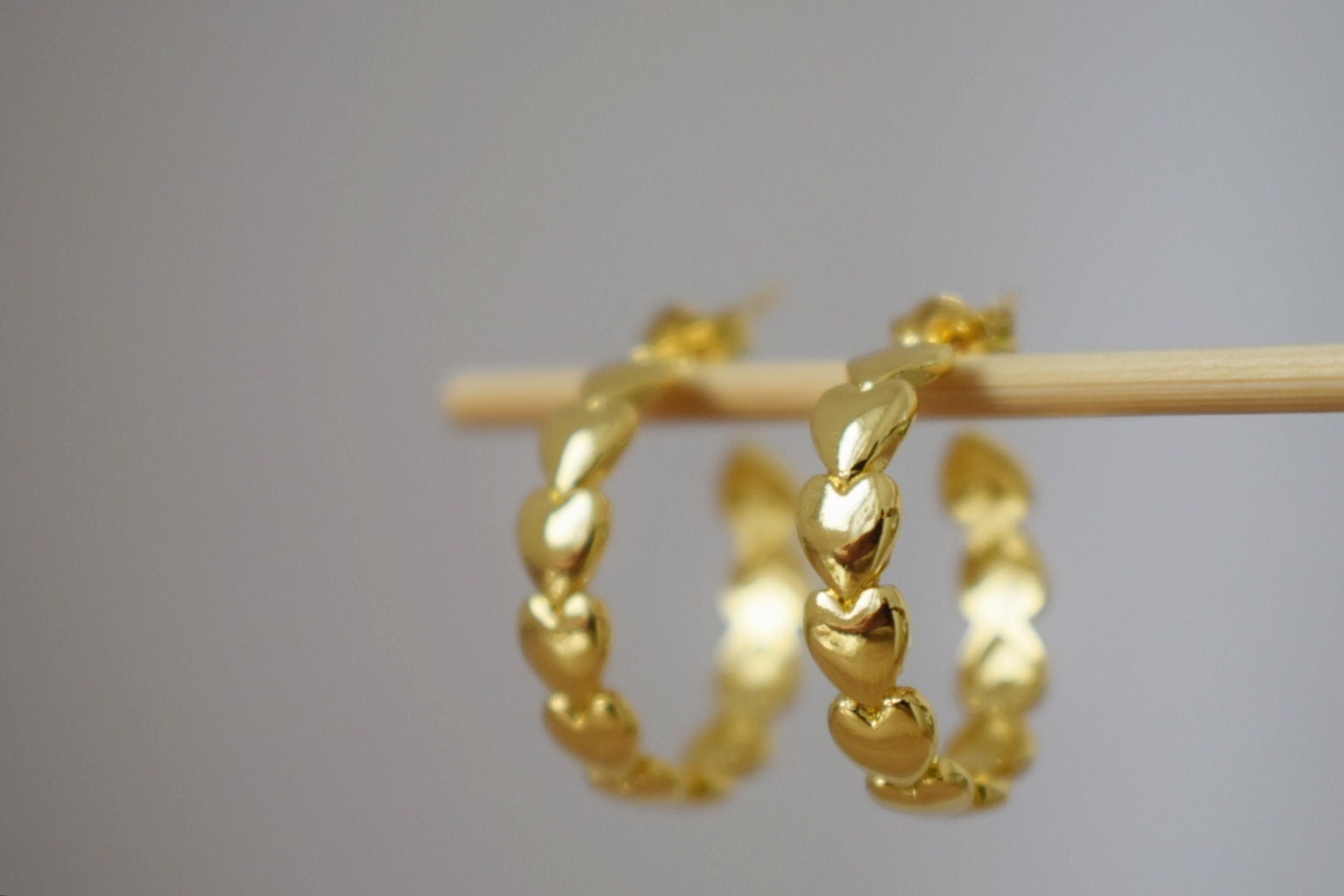 Ohrstecker aus echtem 18 Karat vergoldetem Messing mit Herz-Wickelung und halben Creolen, Silikon-Steckverschlüsse Ohrstecker mit echter 18-Karat-Goldplattierung aus Messing in Herzform, halbe Creolen, Silikon-Steckverschlüsse.Highlights