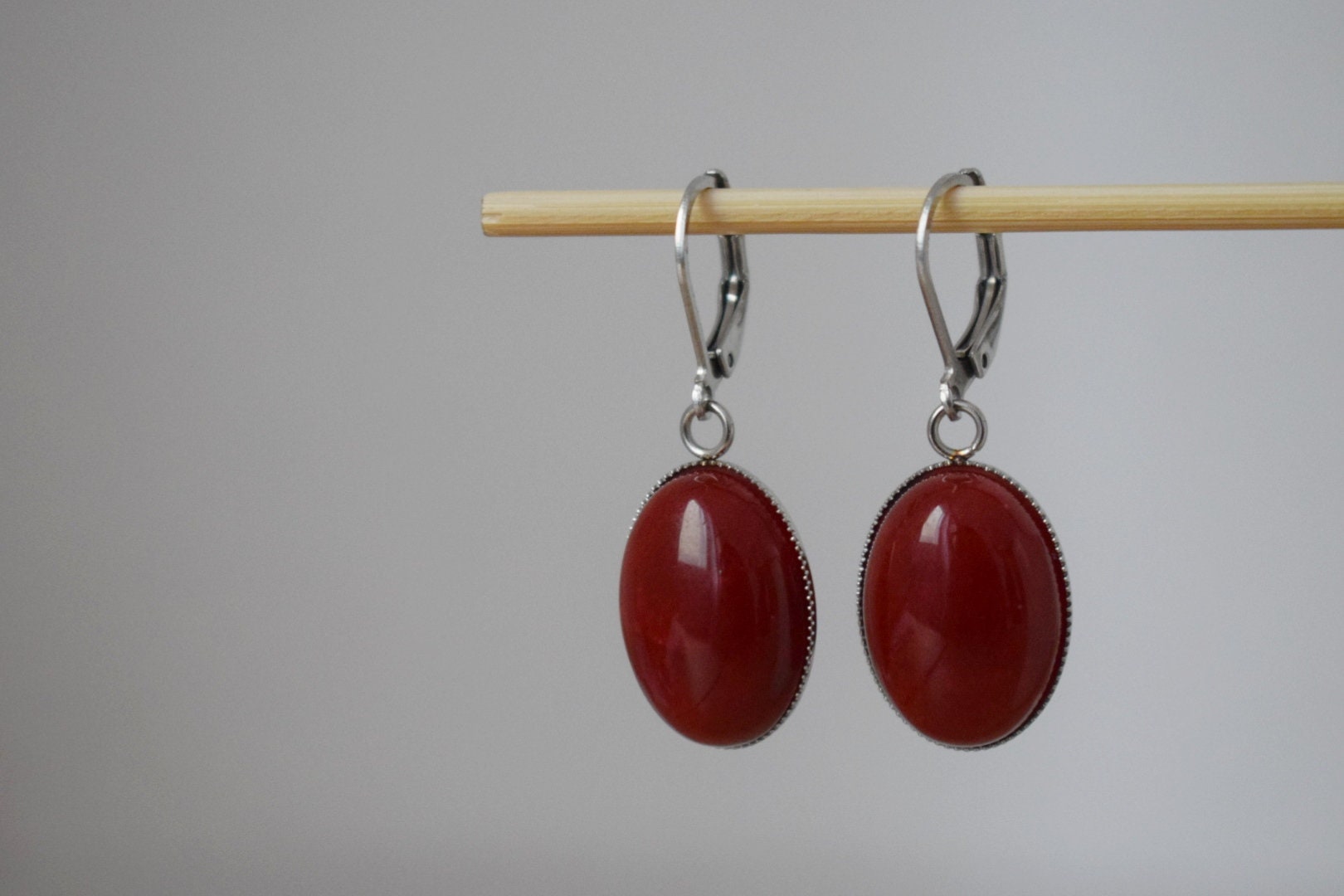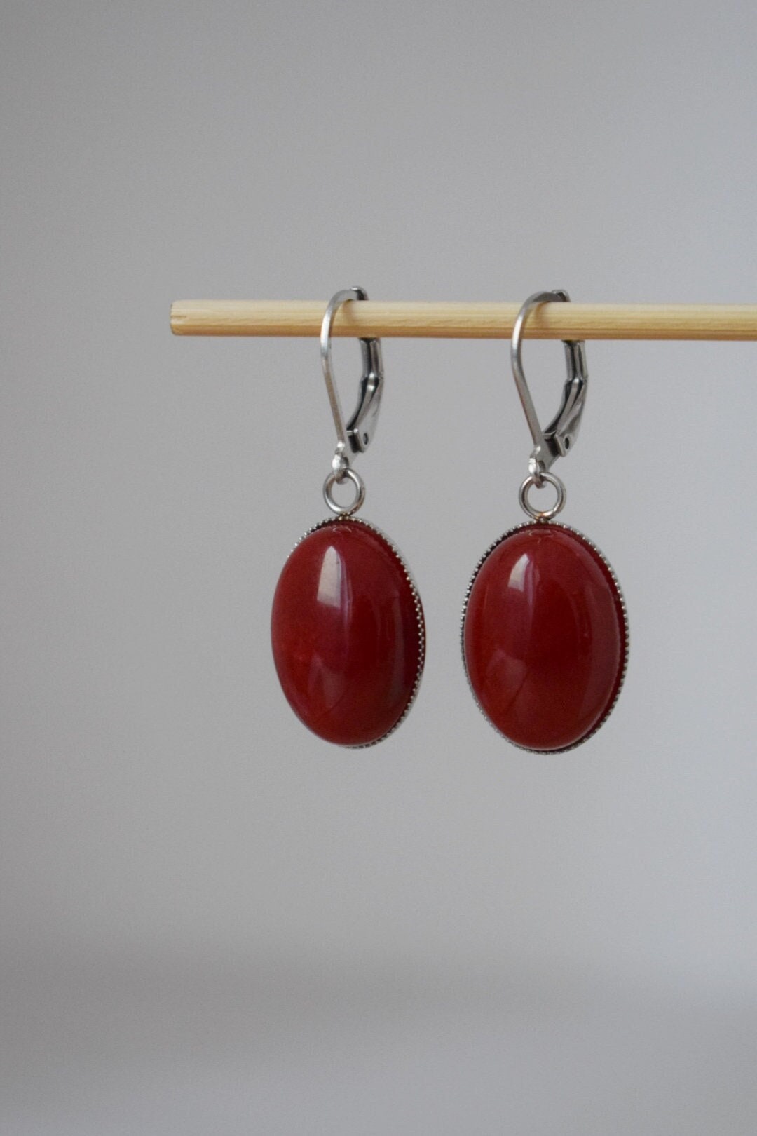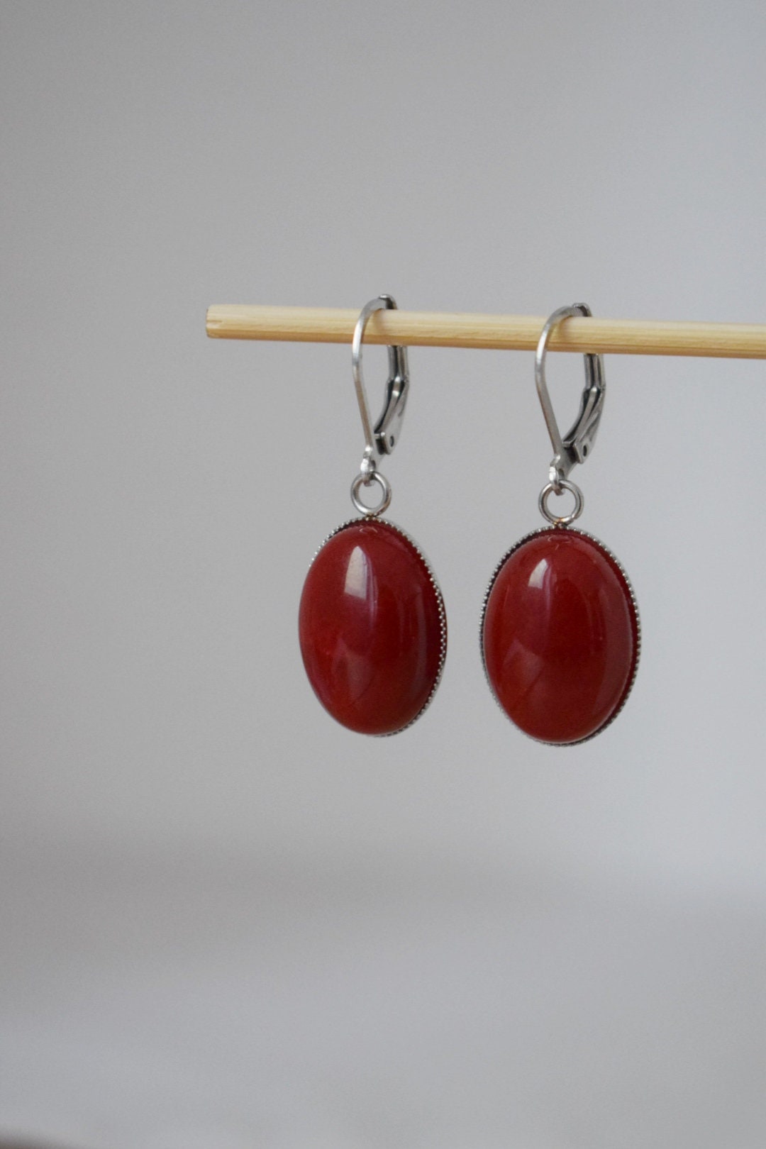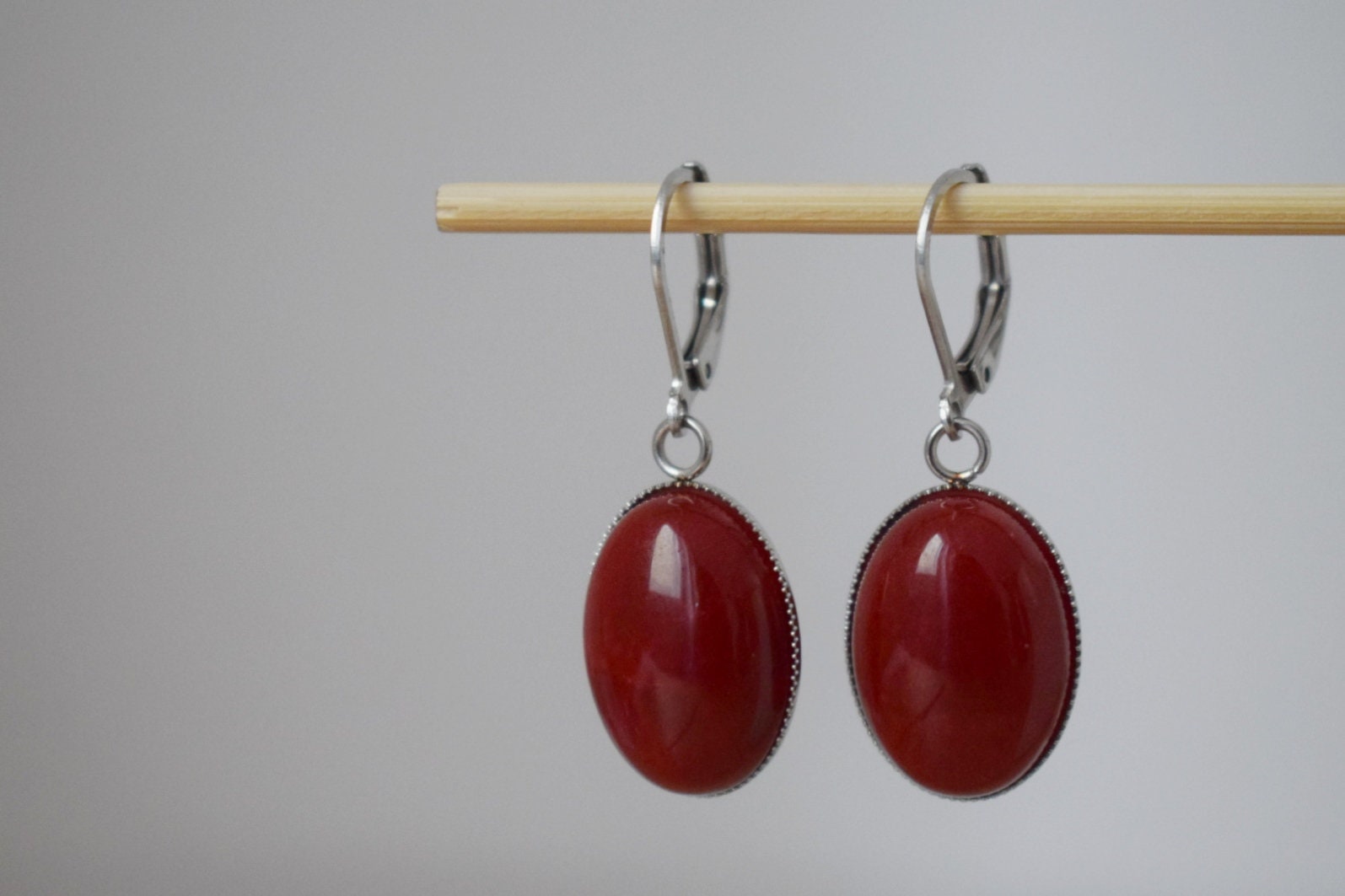 Handgefertigte wunderschöne Ohrhänger mit Jade-Cabochons in schönem Dunkelrot