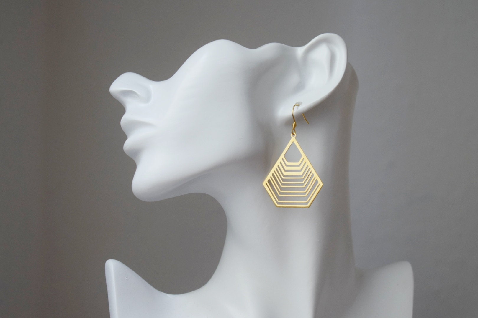 Lange Polygonohren mit goldfiligranem Anhänger, Edelstahlohren, Geometrische Hängeohren, Kleines Weihnachtsschmuckgeschenk für Sie