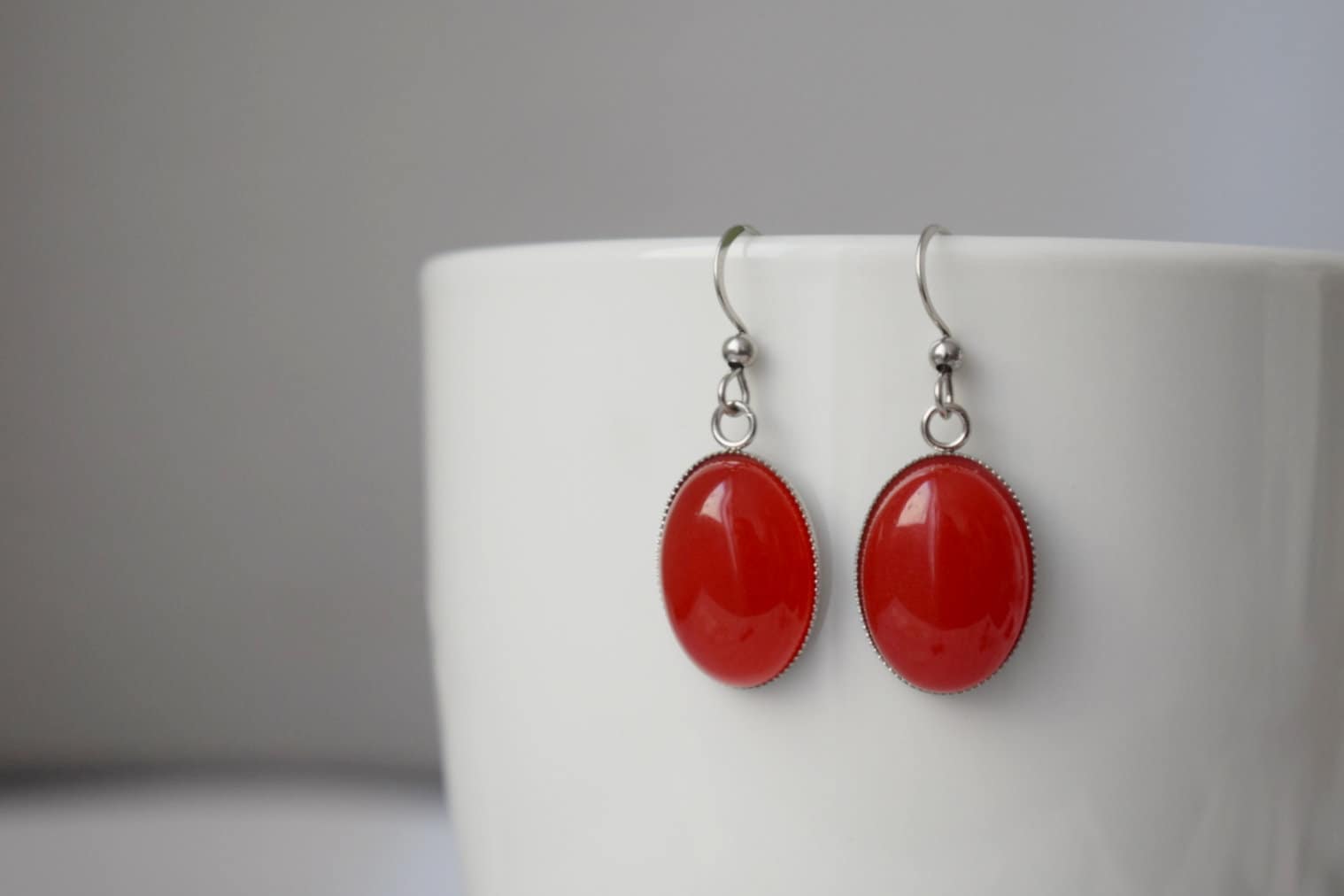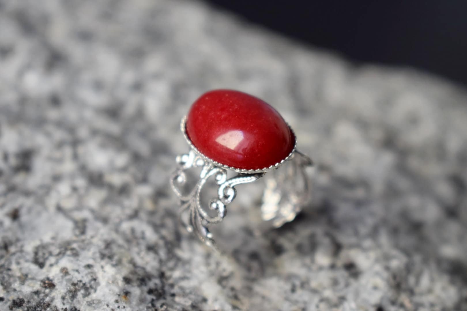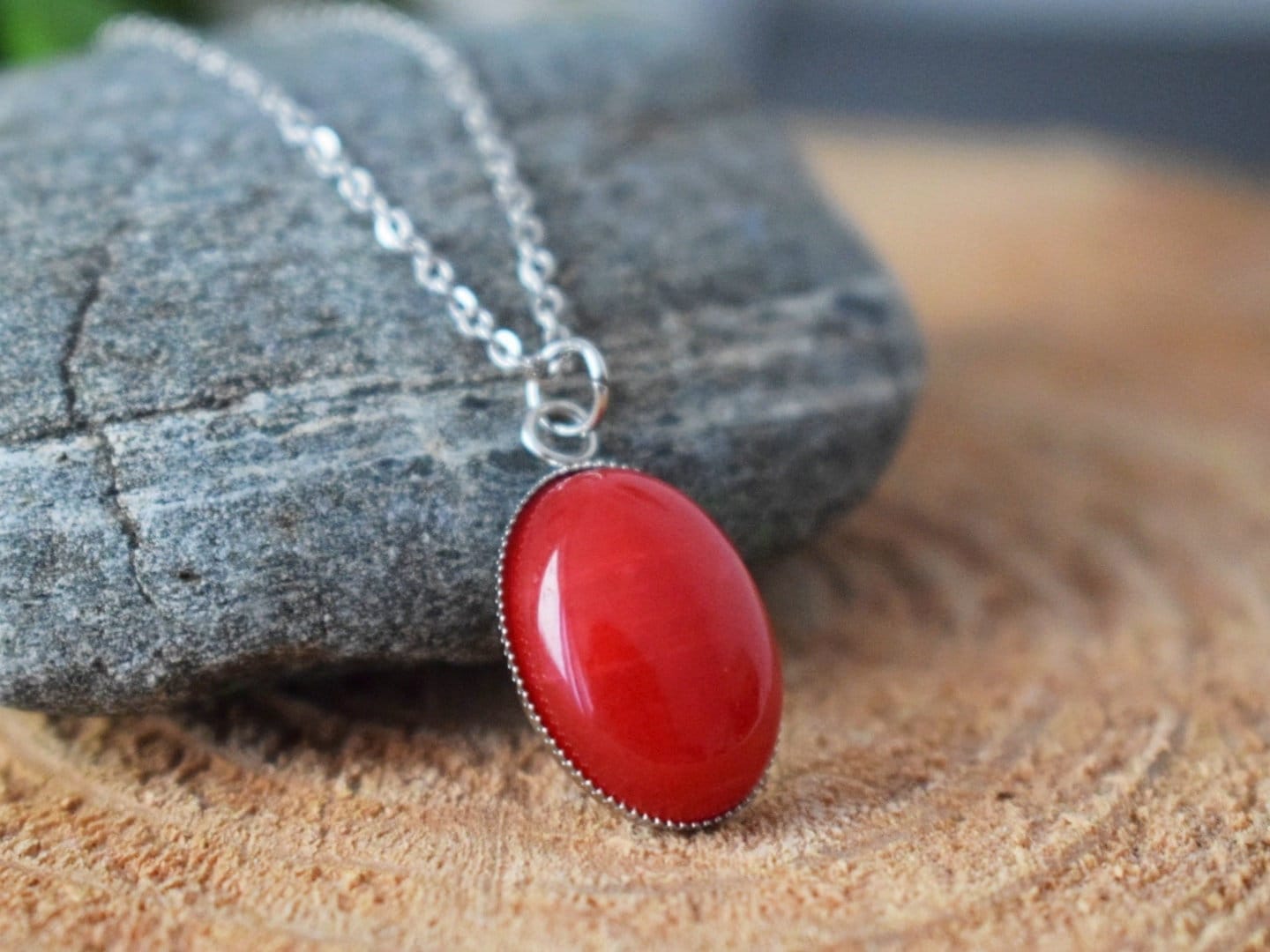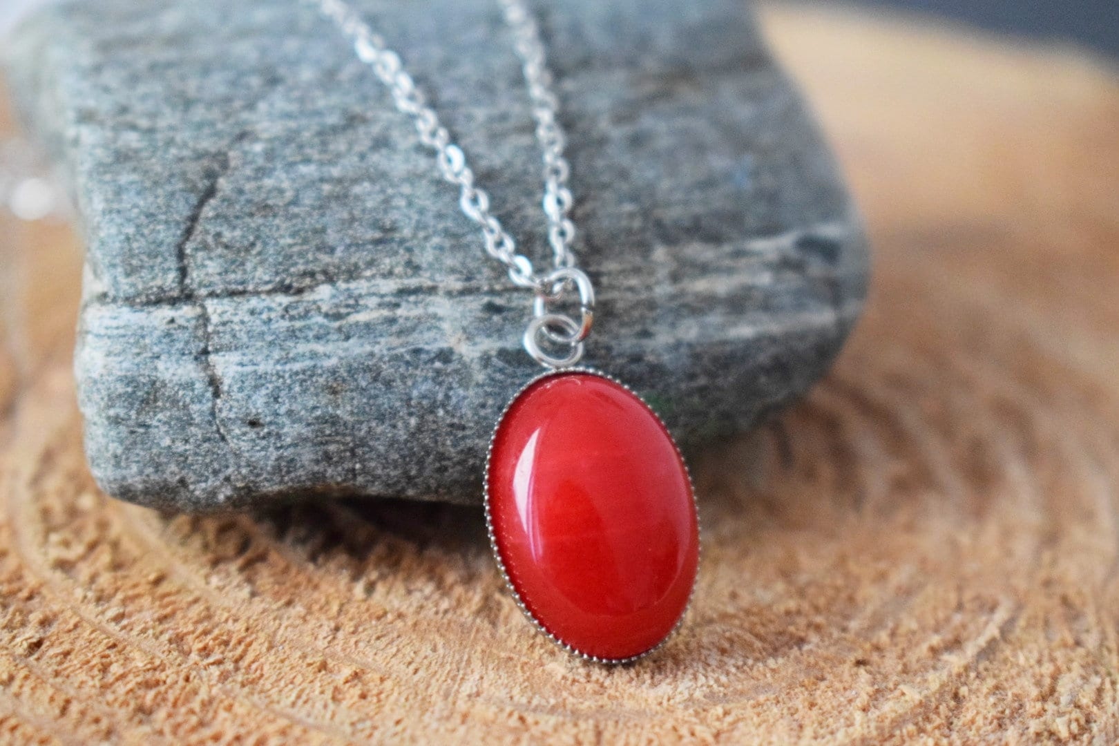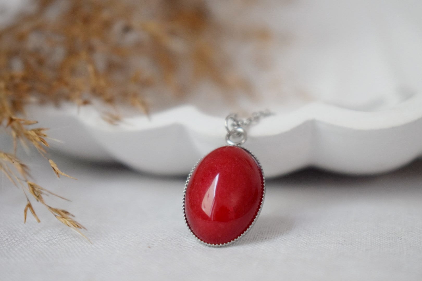 Handgefertigte wunderschöne ovale Edelsteinkette mit Jade in elegantem Rot