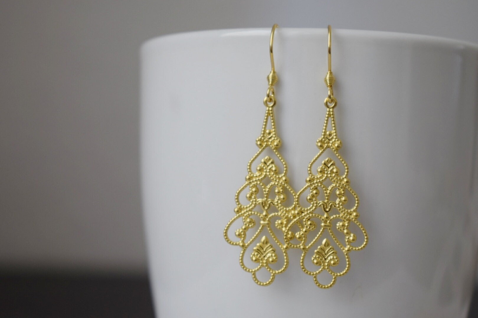 Ornament Ohrringe gold, Lange filigrane & florale Ohrringe, Vintage, Boho, Edelstahl, Tropfen Ohrringe, Unikat, handgefertigtes Schmuckgeschenk