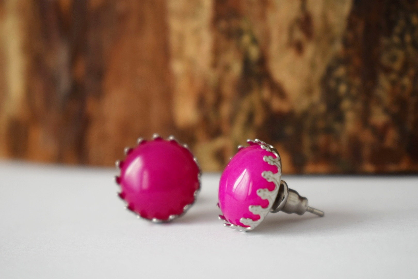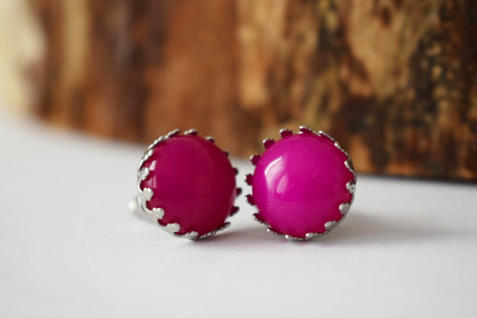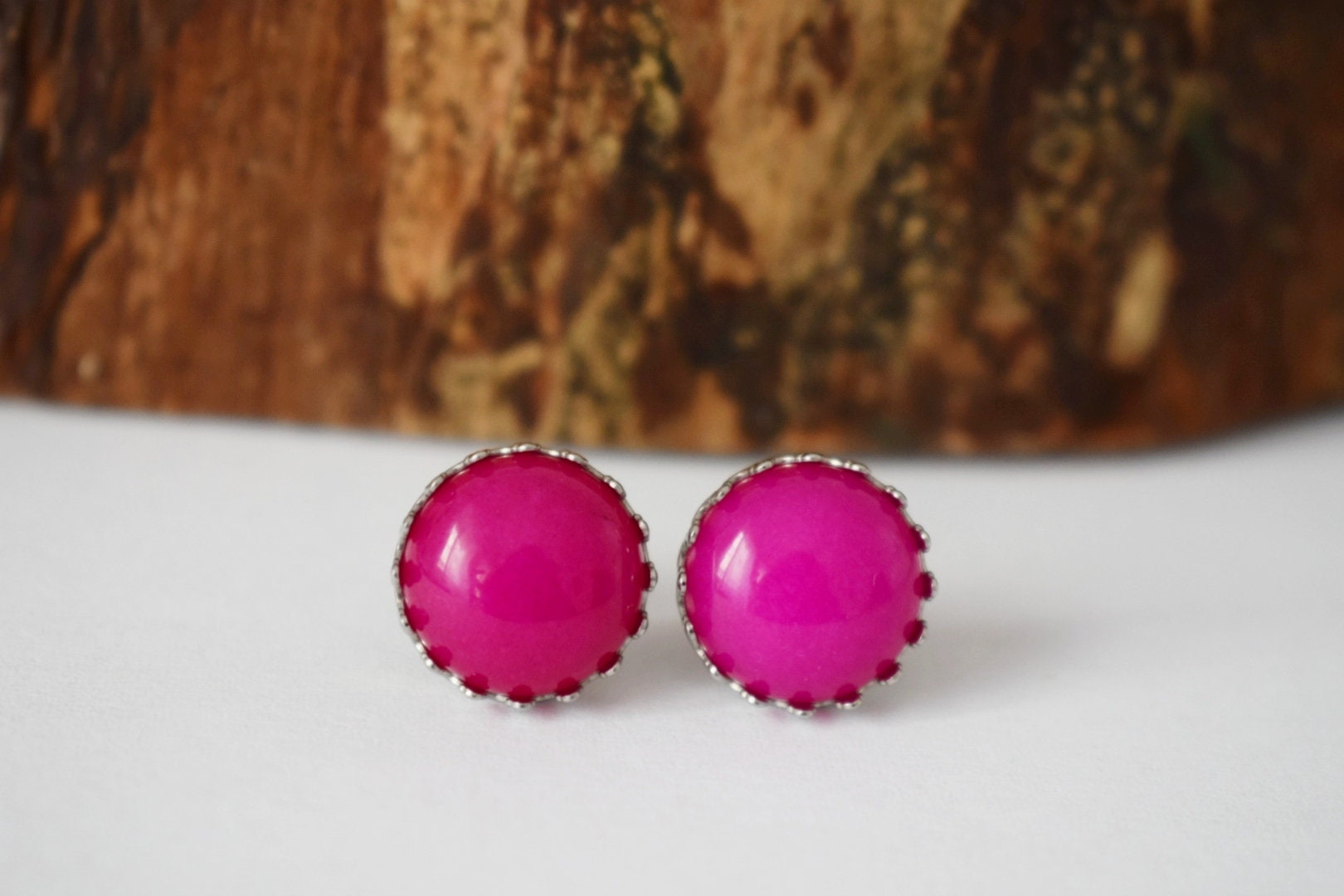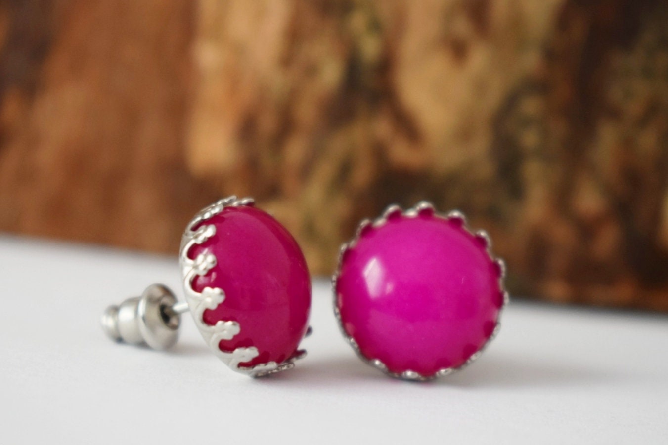 Rosa Jade Ohrstecker, Edelstein Ohrringe, Stein Edelstahl Ohrstecker Push-Back Ohrringe, Post Ohrringe, handgefertigte Schmuck Geschenke